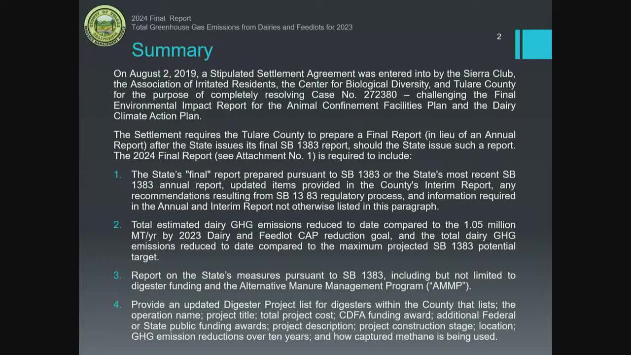 Tulare County accepts final 2023 dairy greenhouse‑gas report, urges continued state incentives