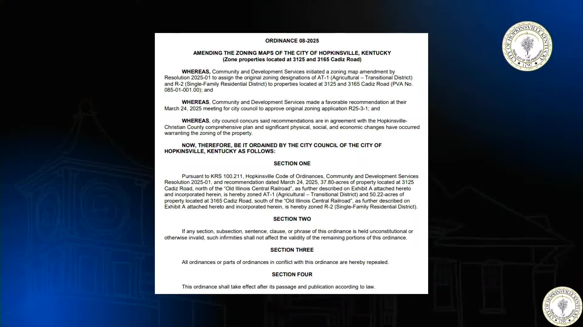 Hopkinsville City Council approves rezones, grant match for greenway and several ordinance updates