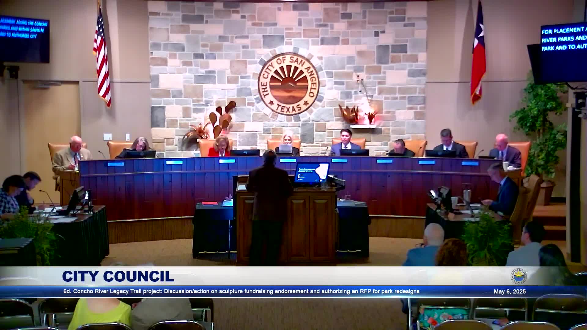 Council clears way for Concho River legacy‑trail sculptures; private fundraising and park planning authorized