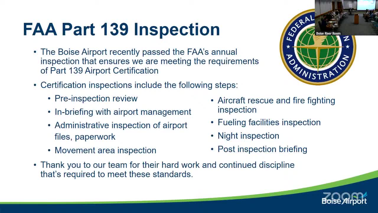 Boise Airport reports passenger growth, discrepancy‑free FAA inspection and Real ID rollout; fuel and parking rate changes to go to City Council