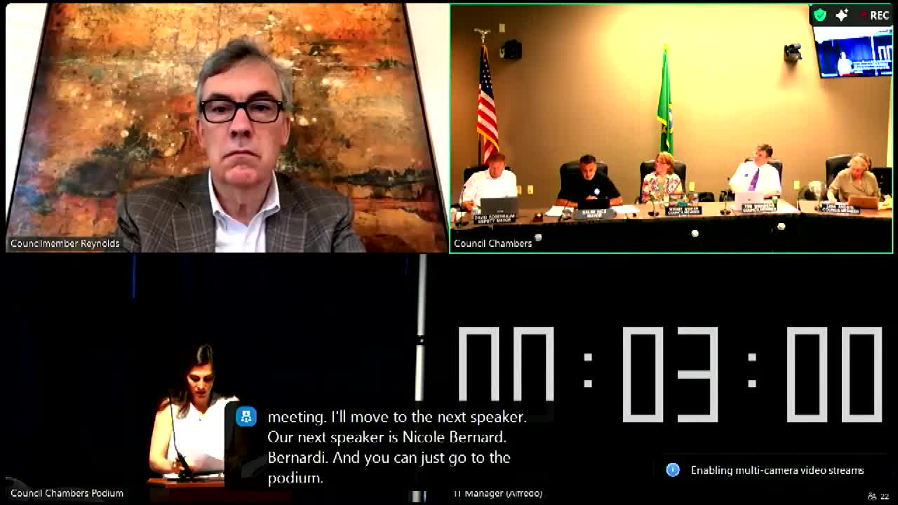 Resident tells council of dangerous curve near West Mercer on‑ramp; requests signage, enforcement and pavement repairs