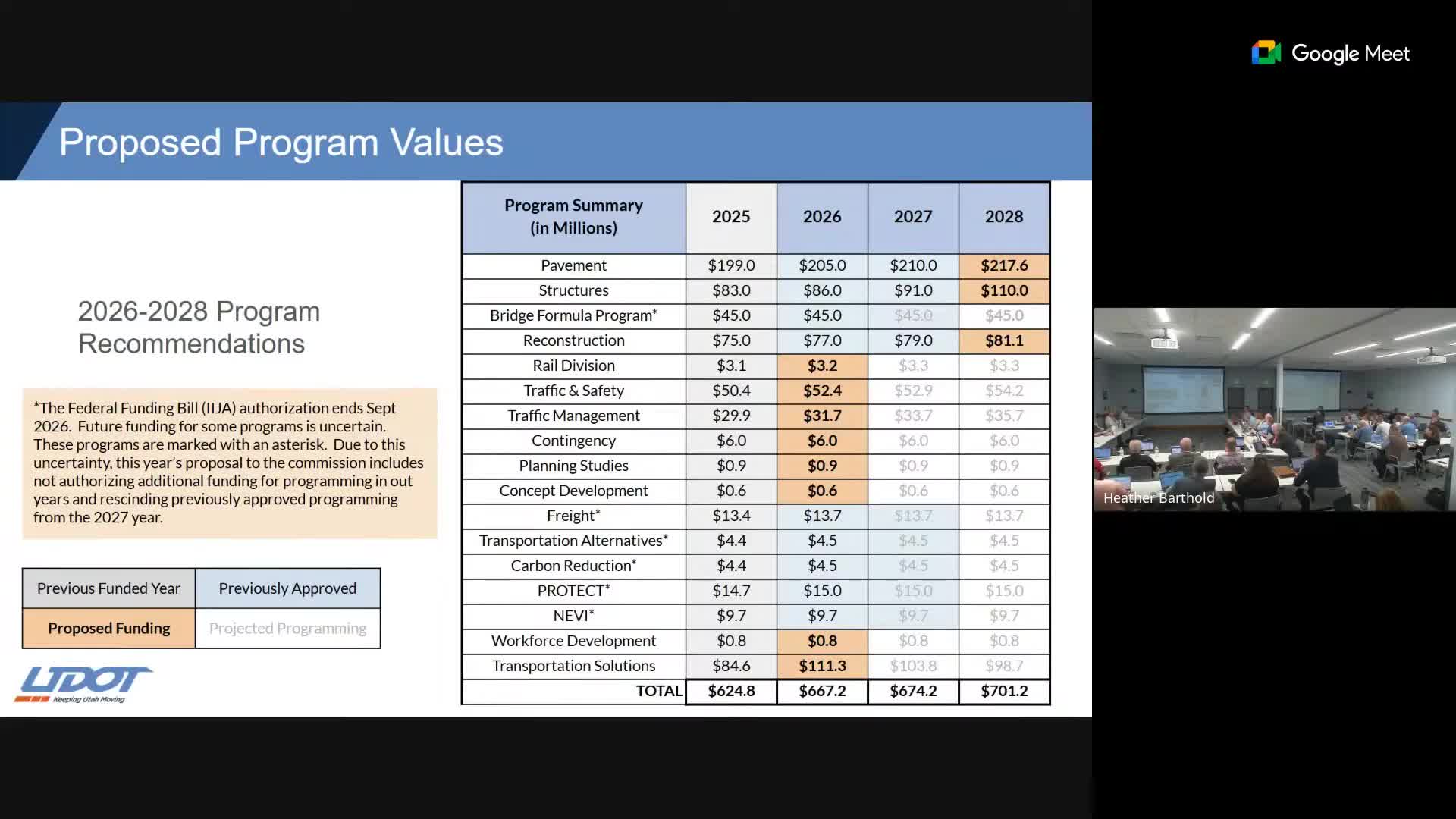 UDOT commissioners briefed on proposed program values and STIP schedule; commission to vote next month