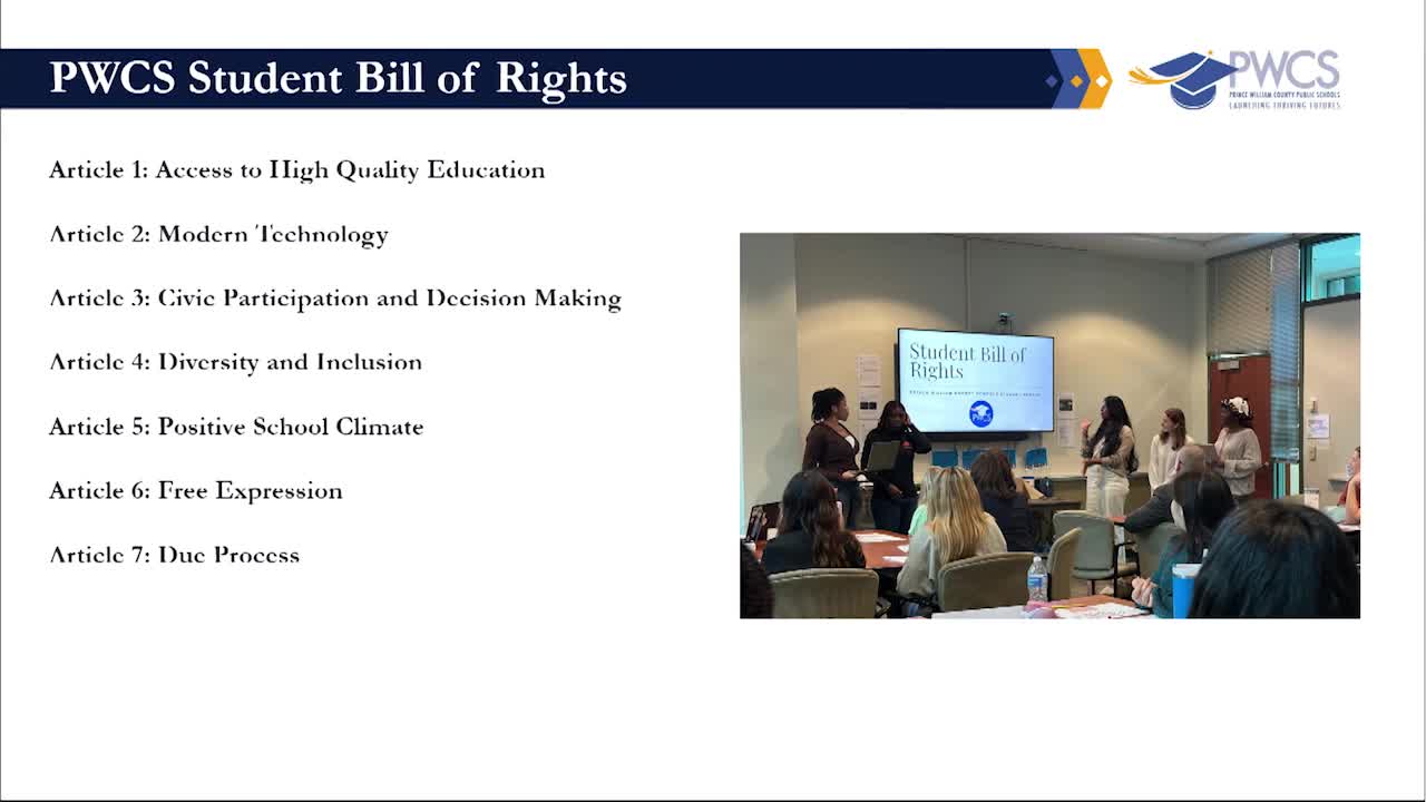 Prince William student leaders present countywide Student Bill of Rights; board to fold it into code of behavior