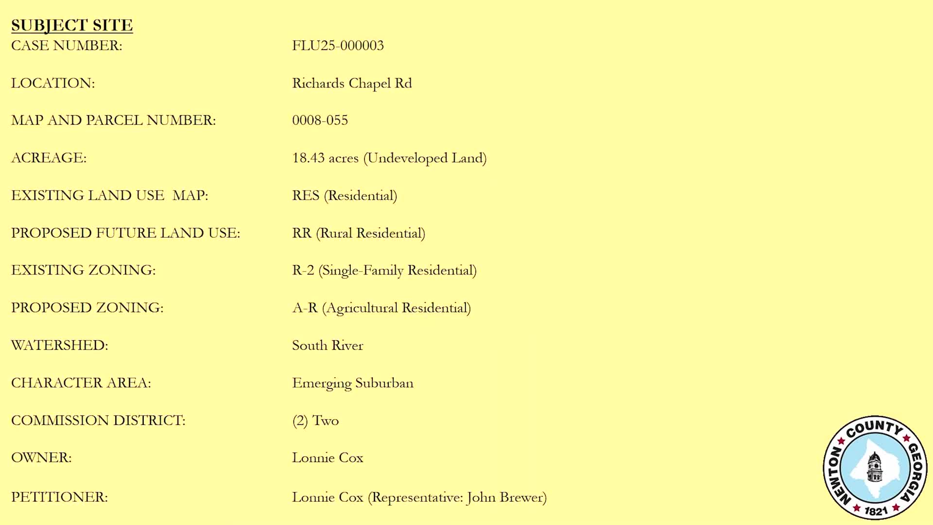 Commissioners table future‑land‑use change for Richard’s Chapel Road parcel after staff briefing