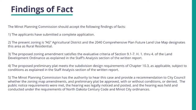 Commission recommends rezoning, preliminary plat for Eden Addition at edge of Minot ETJ