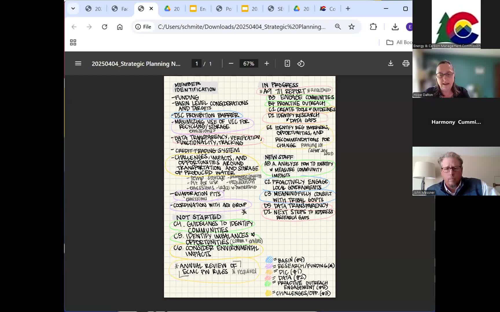 Produced Water Consortium sets priorities, timelines and coordinates with ECMC on emissions work group; deliverable due July 1