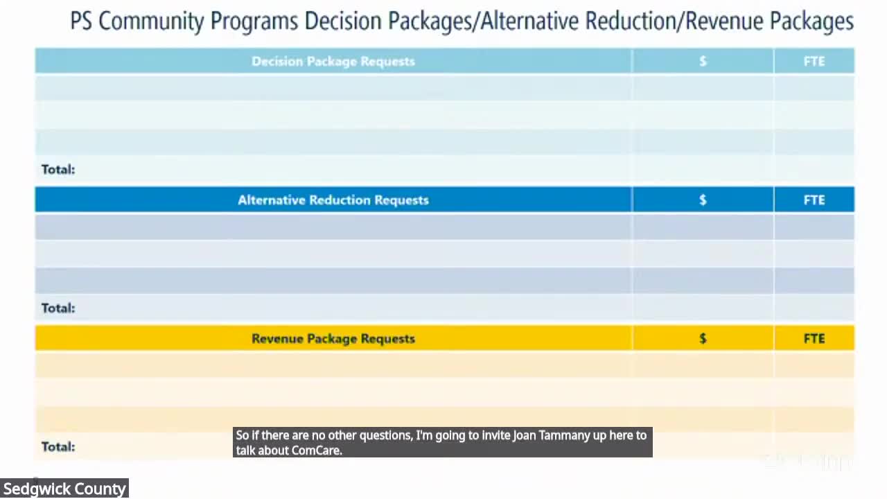 Sedgwick County budget presenters seek 10 care-coordinator positions for Comcare, funded from CCBHC revenue