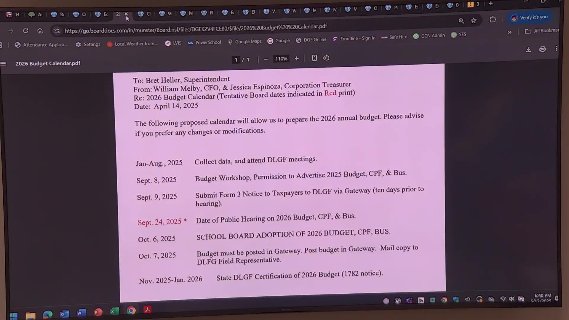 Munster officials outline budget calendar and caution on revenue uncertainty