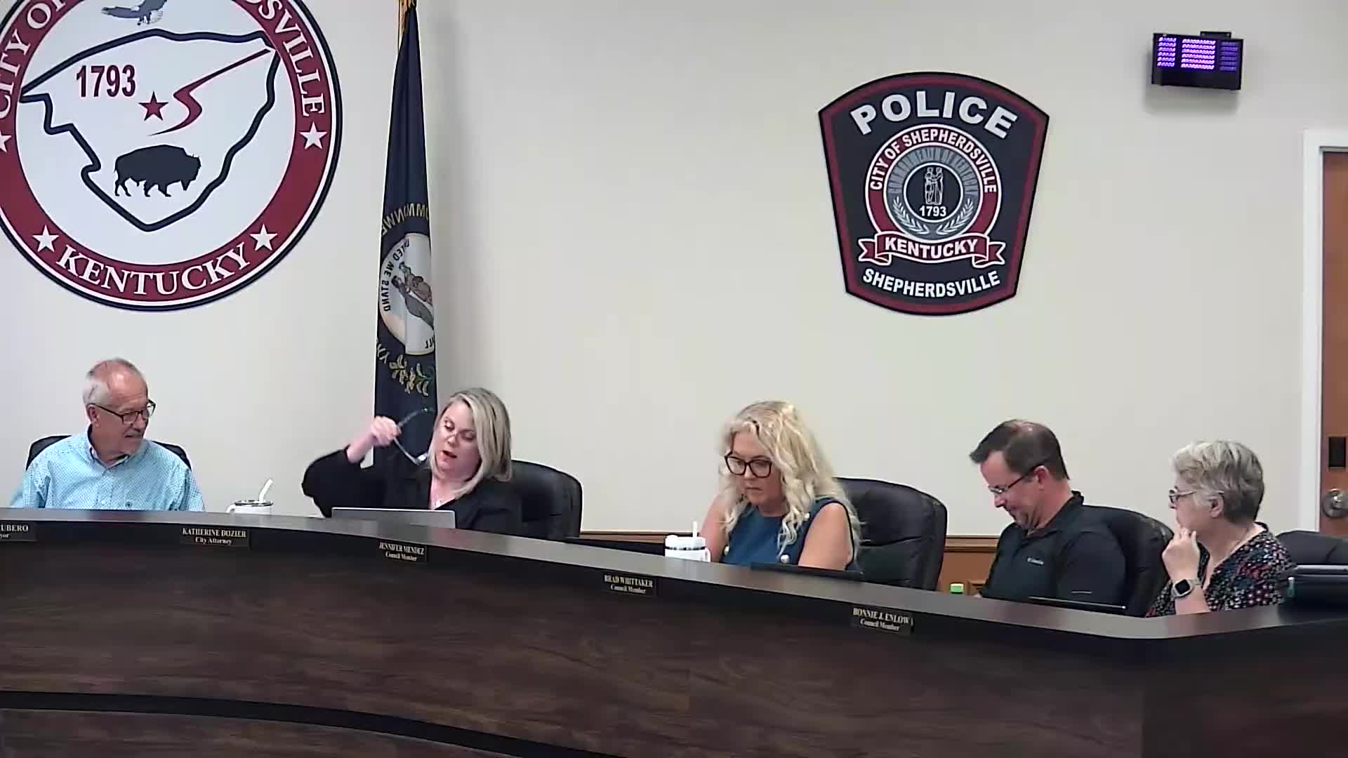 Shepherdsville officials review quote for portable Conestoga ADA restrooms