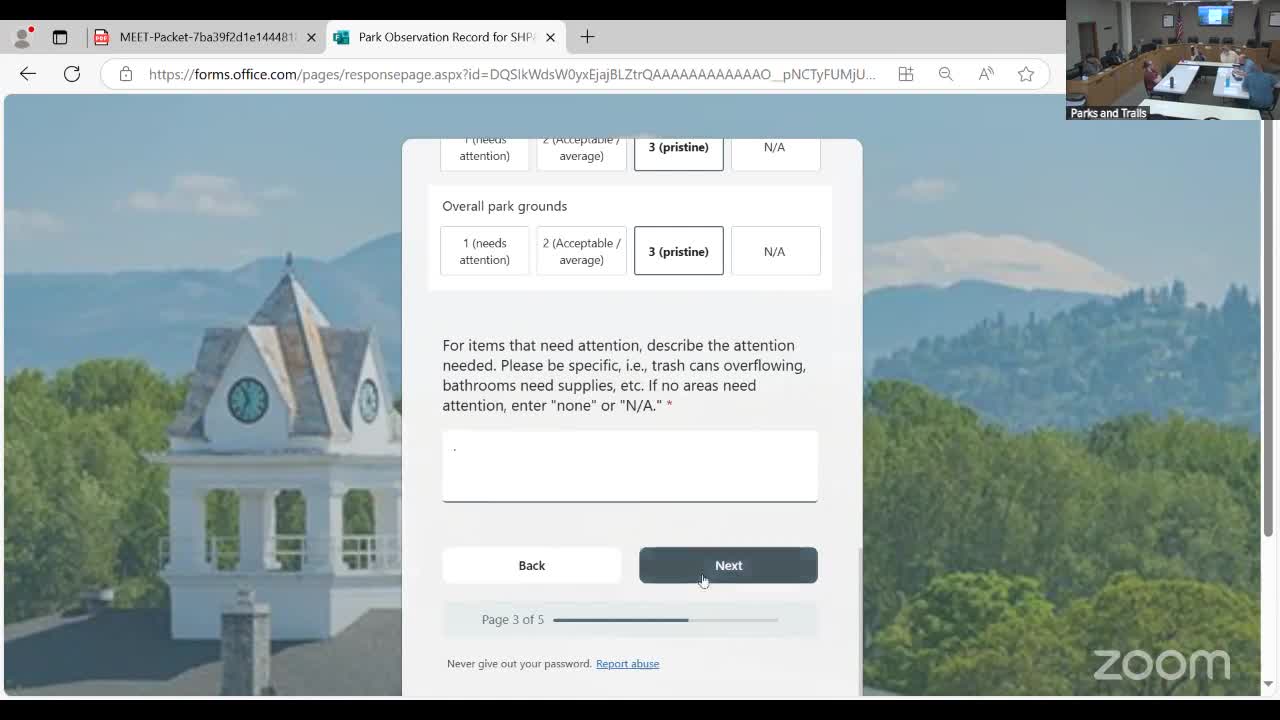 Commission previewed a digital parks-assessment form to replace paper surveys and centralize park condition data