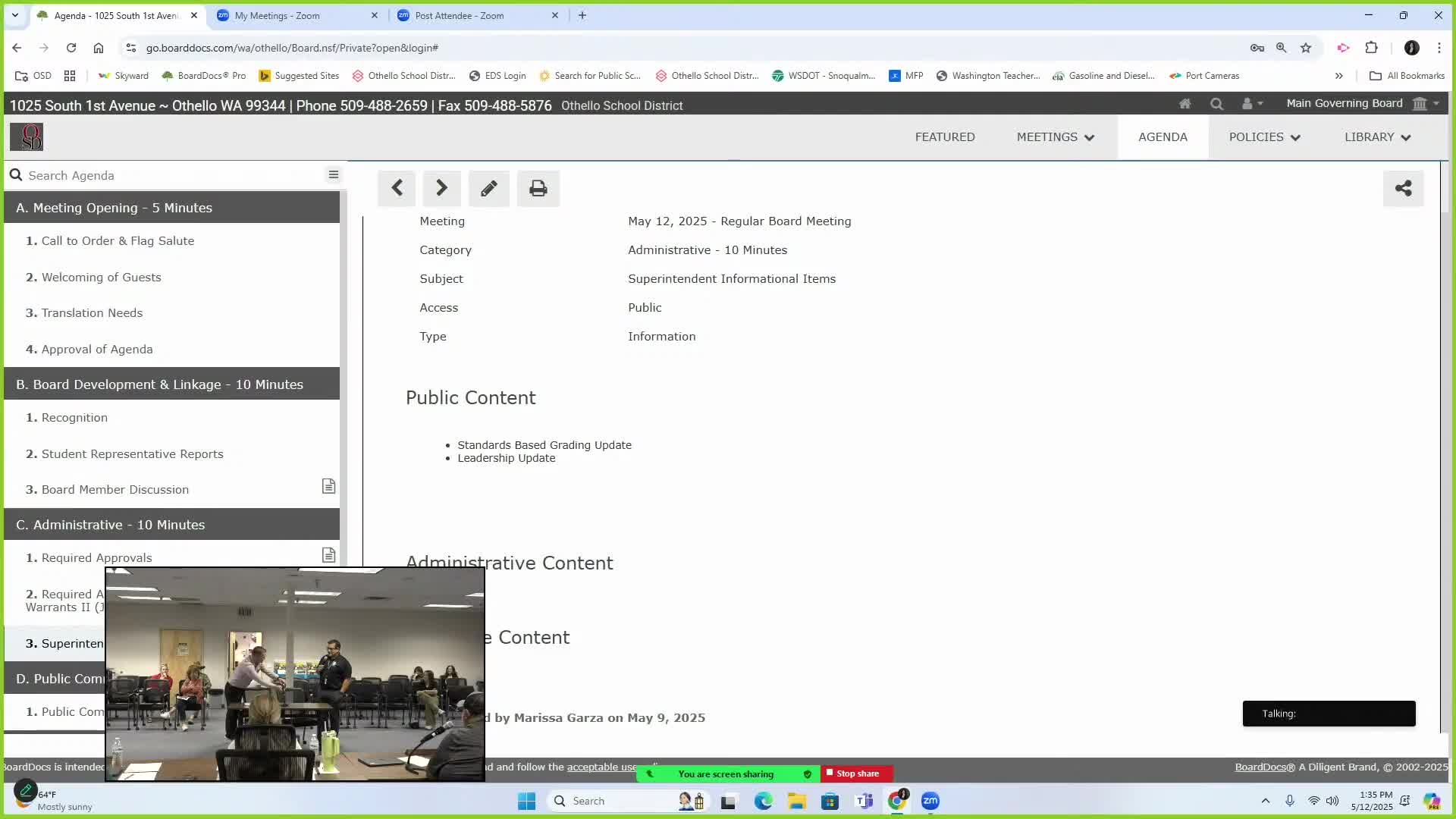 Othello board hears state K‑12 funding figures, cuts and federal probe into OSPI
