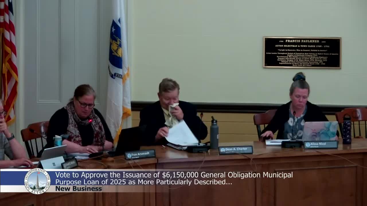 Select Board authorizes $6,150,000 general obligation municipal loan; bond sale awarded to Raymond James