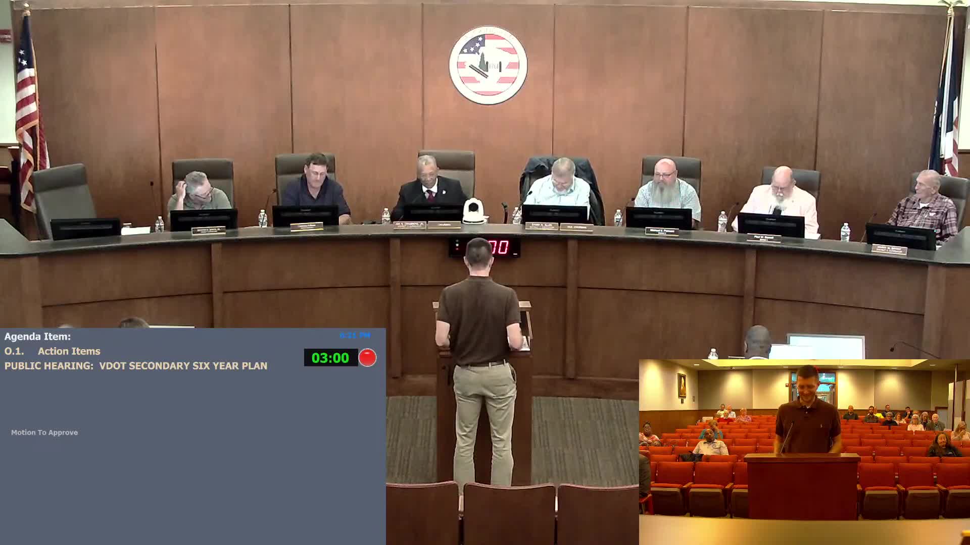Board accepts VDOT six-year plan, schedules comprehensive-plan public hearing and refers a zoning map amendment to planning commission
