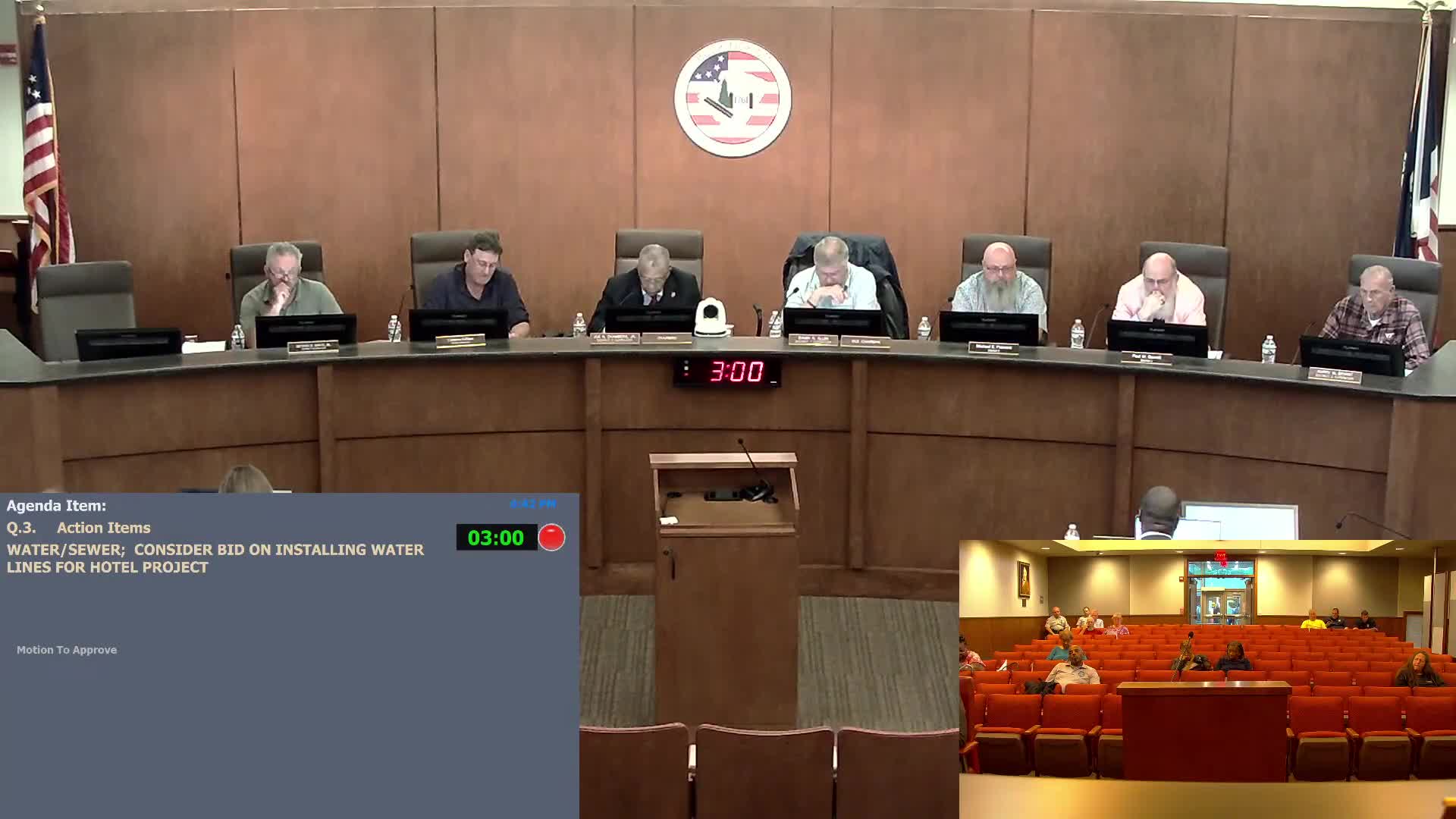 Board accepts $273,446.50 bid to extend water and sewer lines to hotel site, to be paid from economic development reserve