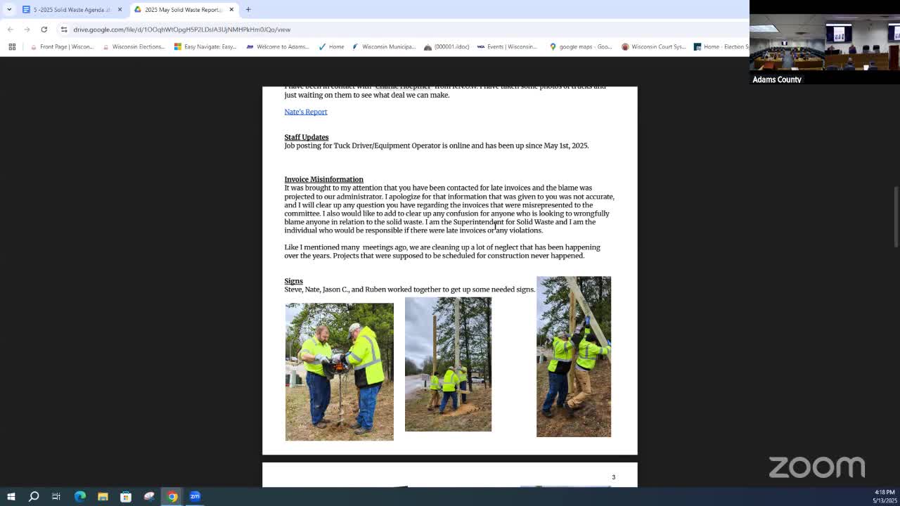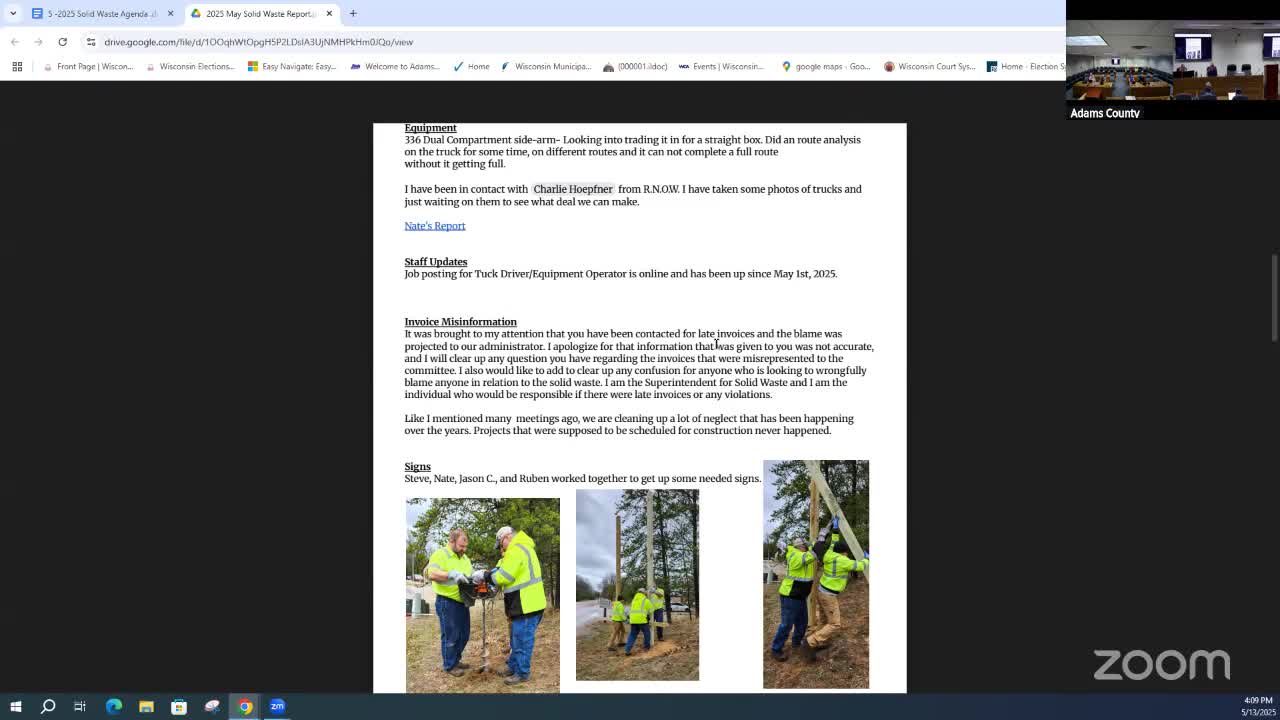 County staff correct DNR invoice posting; solid waste shows year-to-date surplus