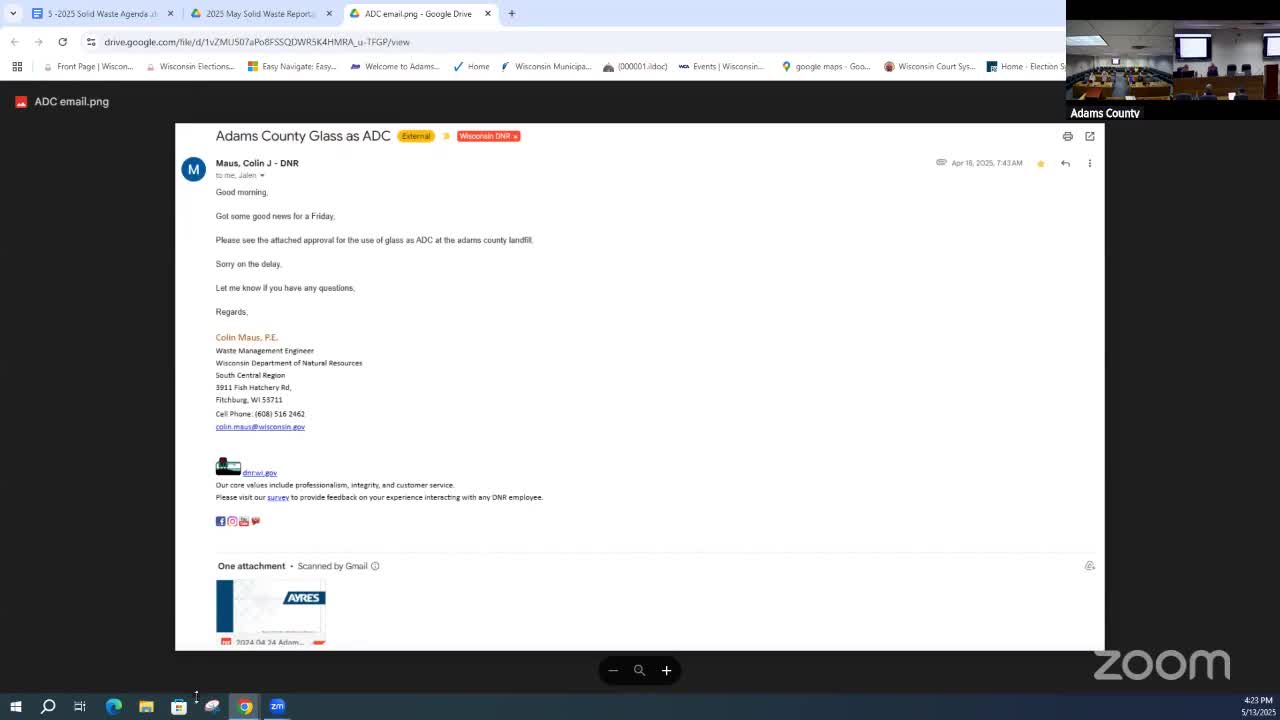 Adams County solid waste staff report compliance work, new ADC approval and contained landfill fire