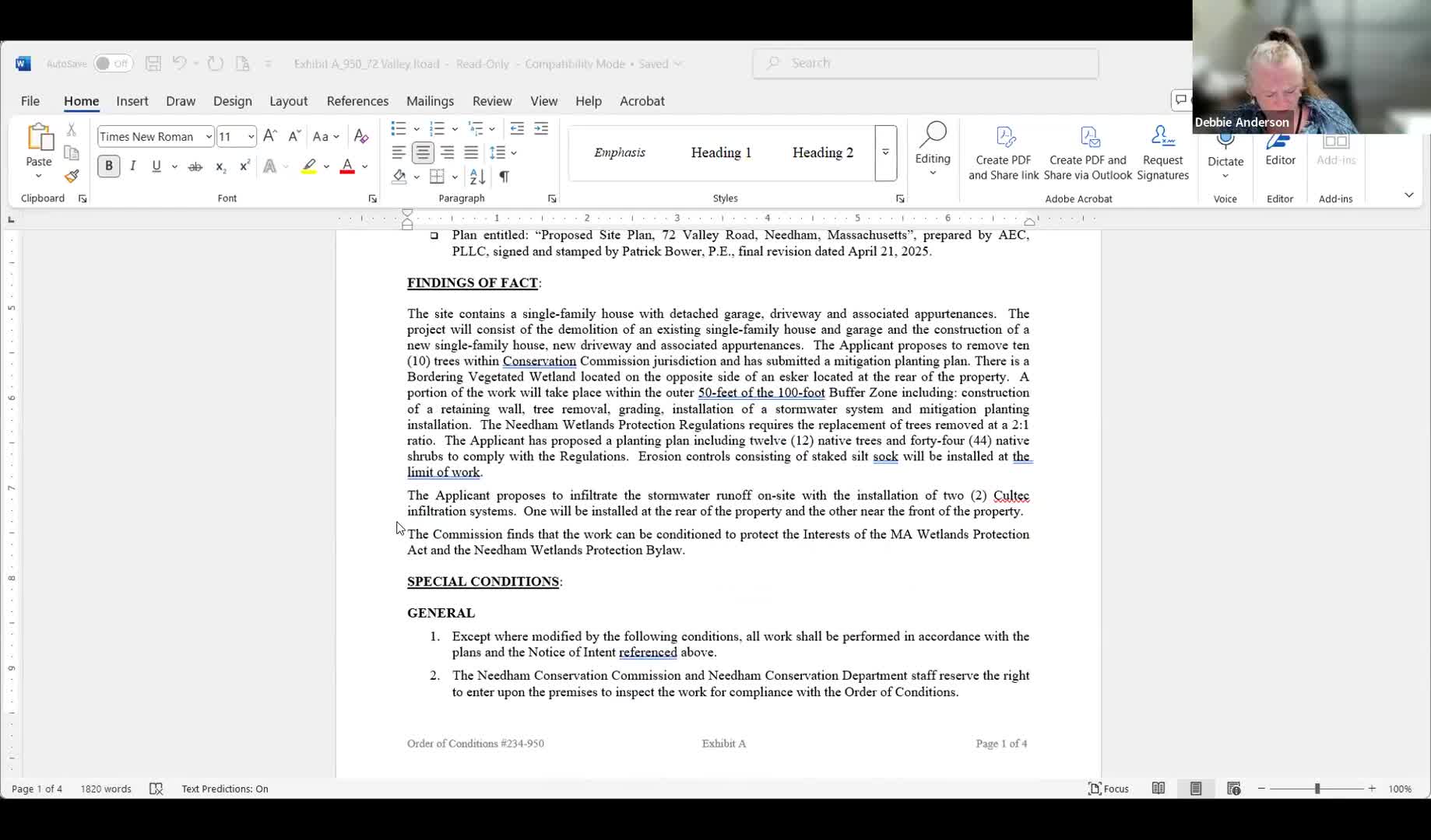 Commission issues order of conditions for 72 Valley Road; plan includes retaining wall, tree removals and stormwater infiltration