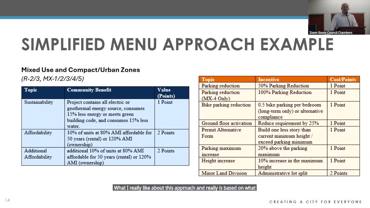 Council hears staff plan to rework zoning incentives into a menu to spur affordable, sustainable housing