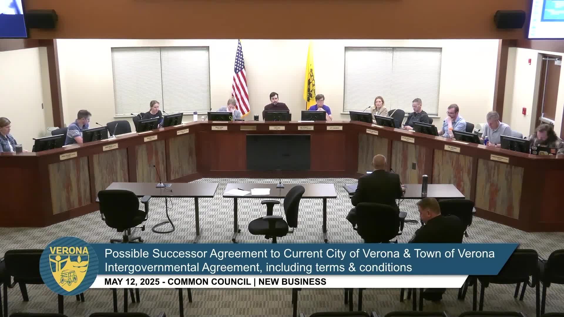 Council discusses successor to Verona–Town of Verona boundary agreement and convenes closed session
