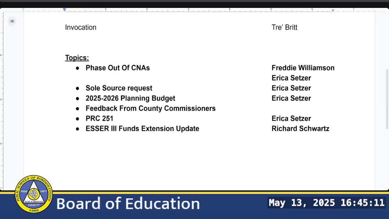 Robeson schools present 2025–26 planning budget; $3 million fund balance needed to balance continuation budget
