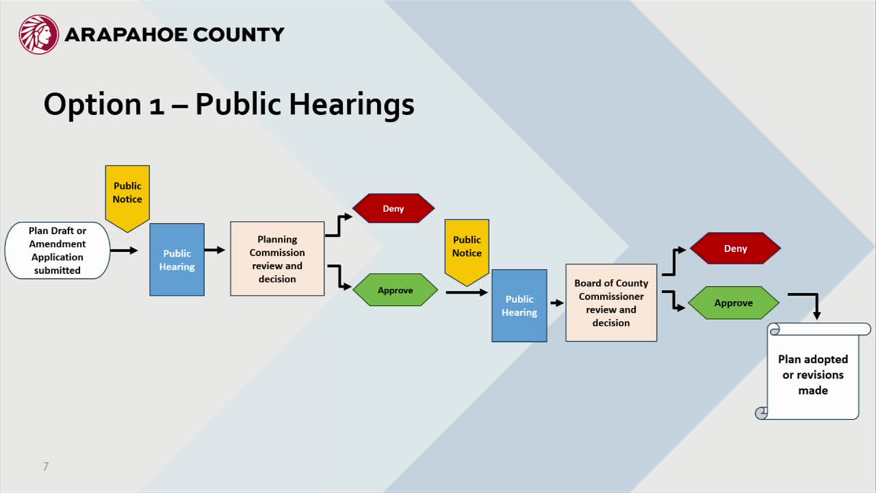 Arapahoe County staff recommends public hearings after SB 24‑174 changed plan-approval process