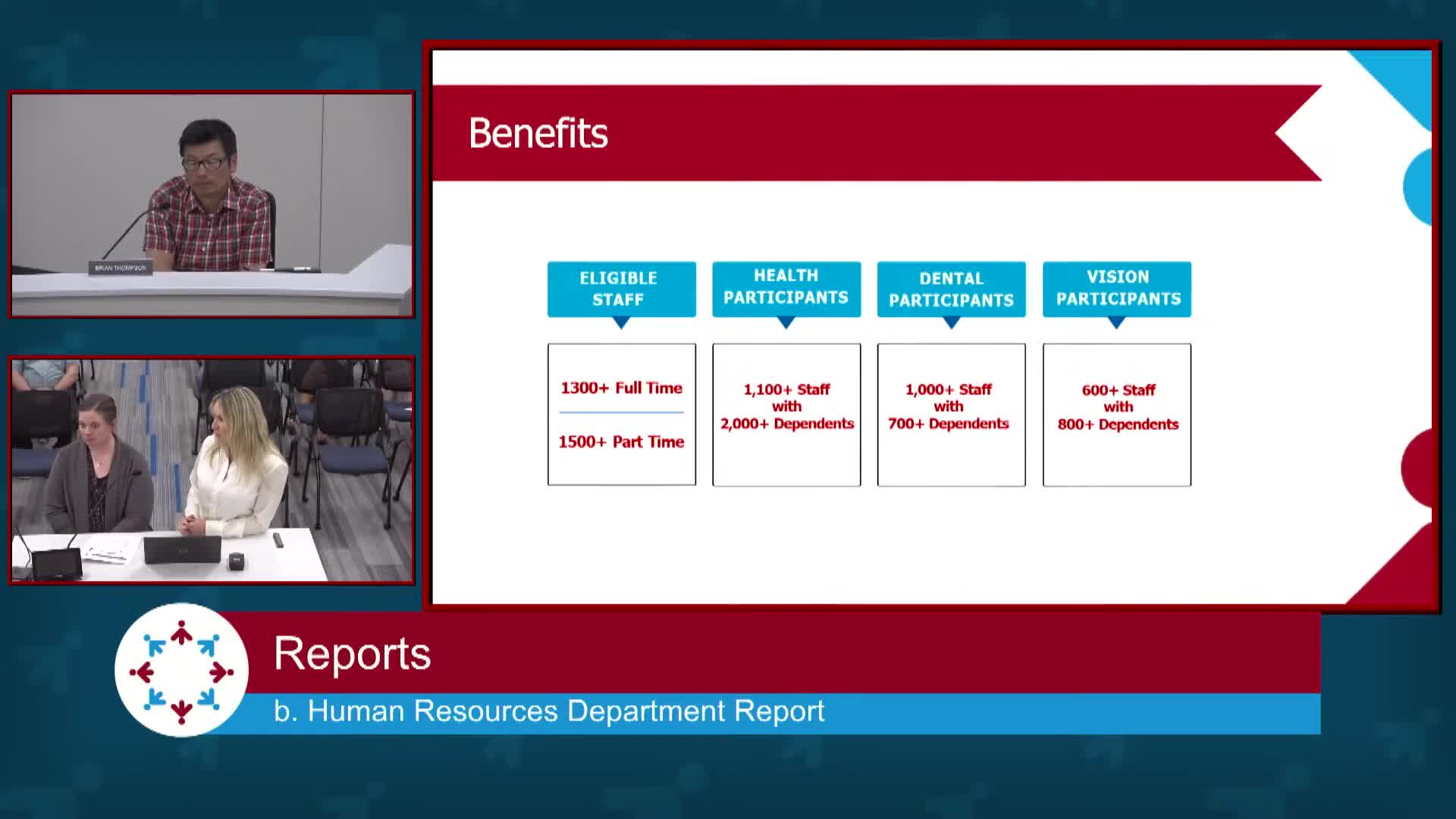 HR presents recruitment and benefits update; department expanding procedures and use of Frontline