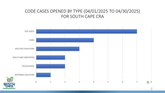 CRA code compliance officer reports enforcement, blight cleanup and outreach in South Cape