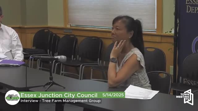 Essex Junction appoints Wendy Pringle to Tree Farm Management Group; interview held at meeting