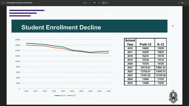 Enrollment down ~3,000 since 2016; district staff levels hold steady, prompting reallocation talks