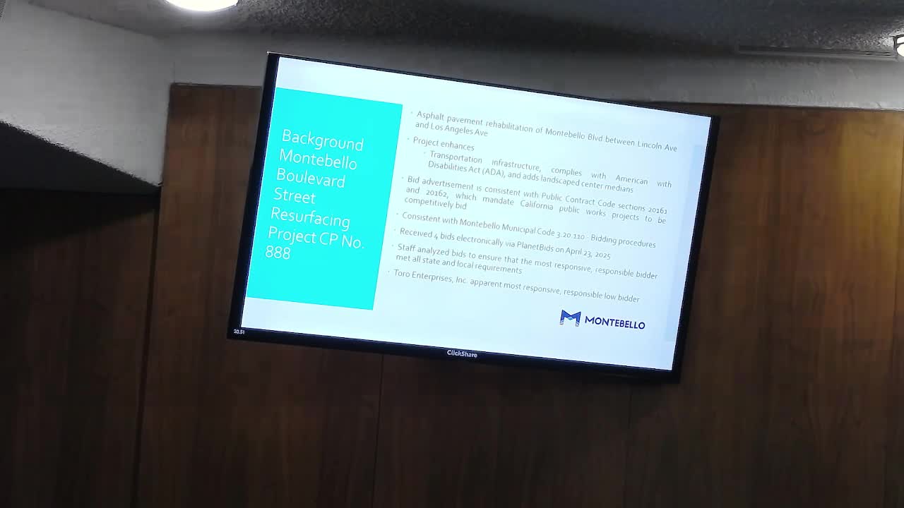 Council awards Montebello Boulevard paving contract to Toro; project to add medians, ADA improvements