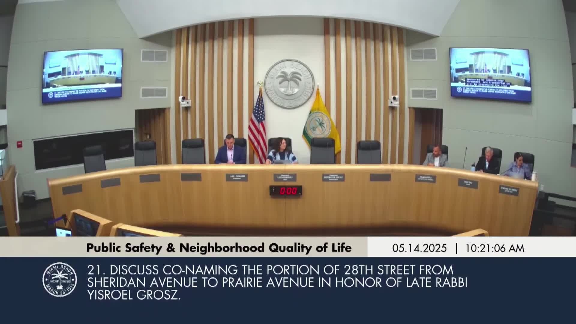 Committee approves co-naming request for 20 Eighth Street in honor of Rabbi Yisorel Gross, will forward resolution to city commission