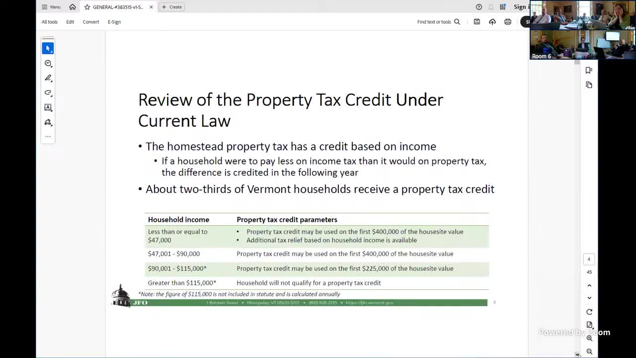 Senate Finance adopts homestead exemption plan D as placeholder, asks Tax Dept. and JFO for refinements