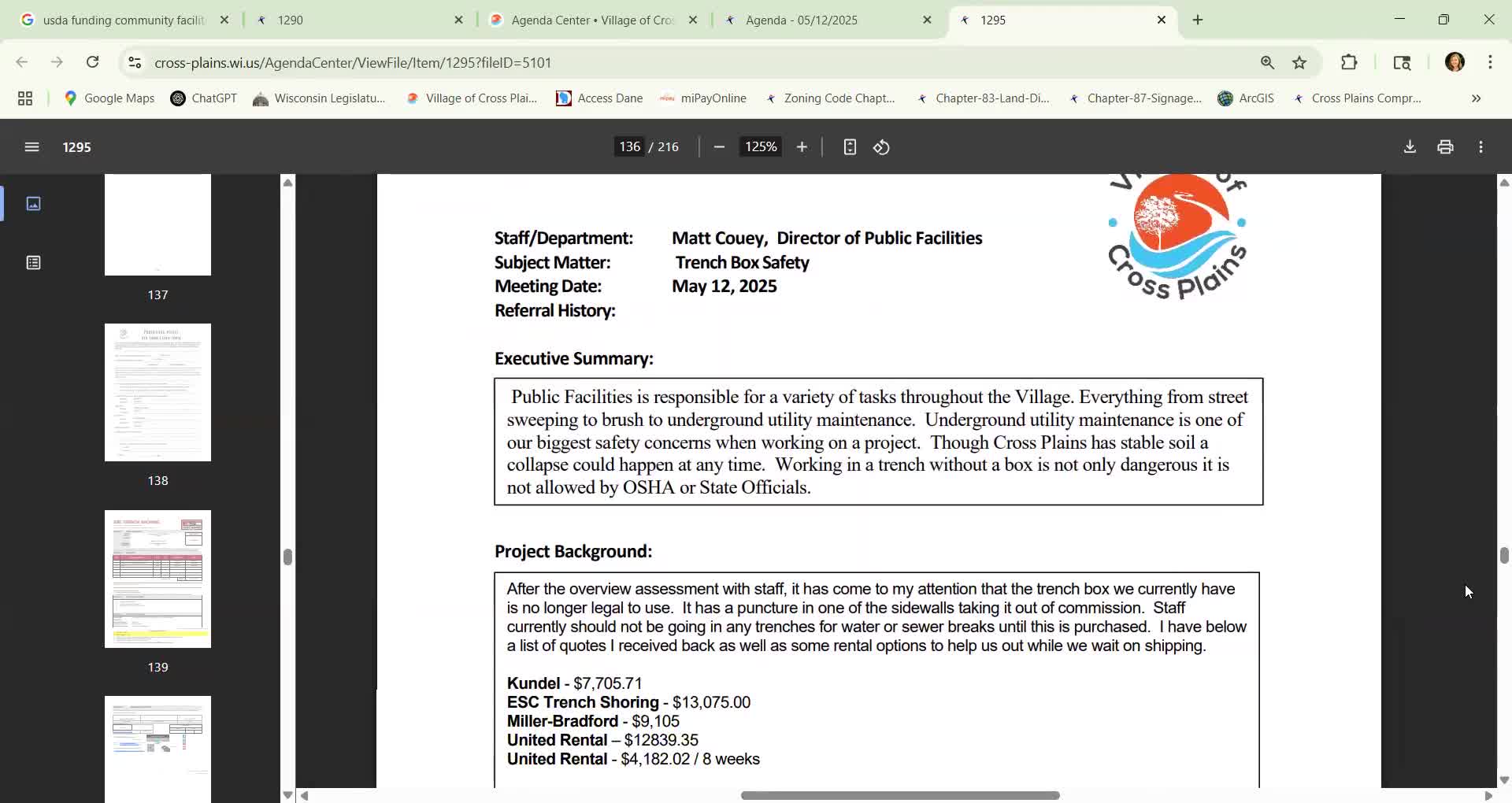 Trustees debate purchase, rental and sharing options for trench safety box after recent damaged unit