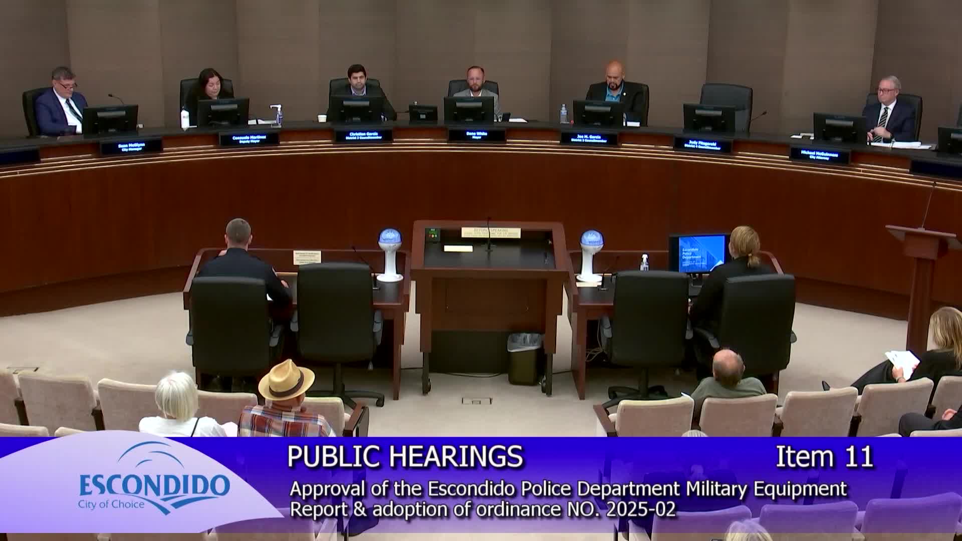 Escondido council renews approval of police military-equipment policy and annual report under AB 481
