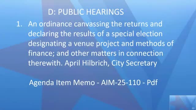 Victoria council adopts ordinance canvassing venue-project election, establishes venue project fund
