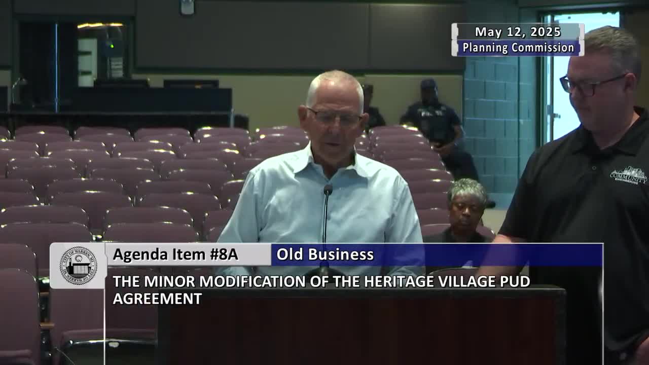 Developer withdraws minor amendment request for Heritage Village PUD; commission recognizes minor amendment to return to fourplex plan