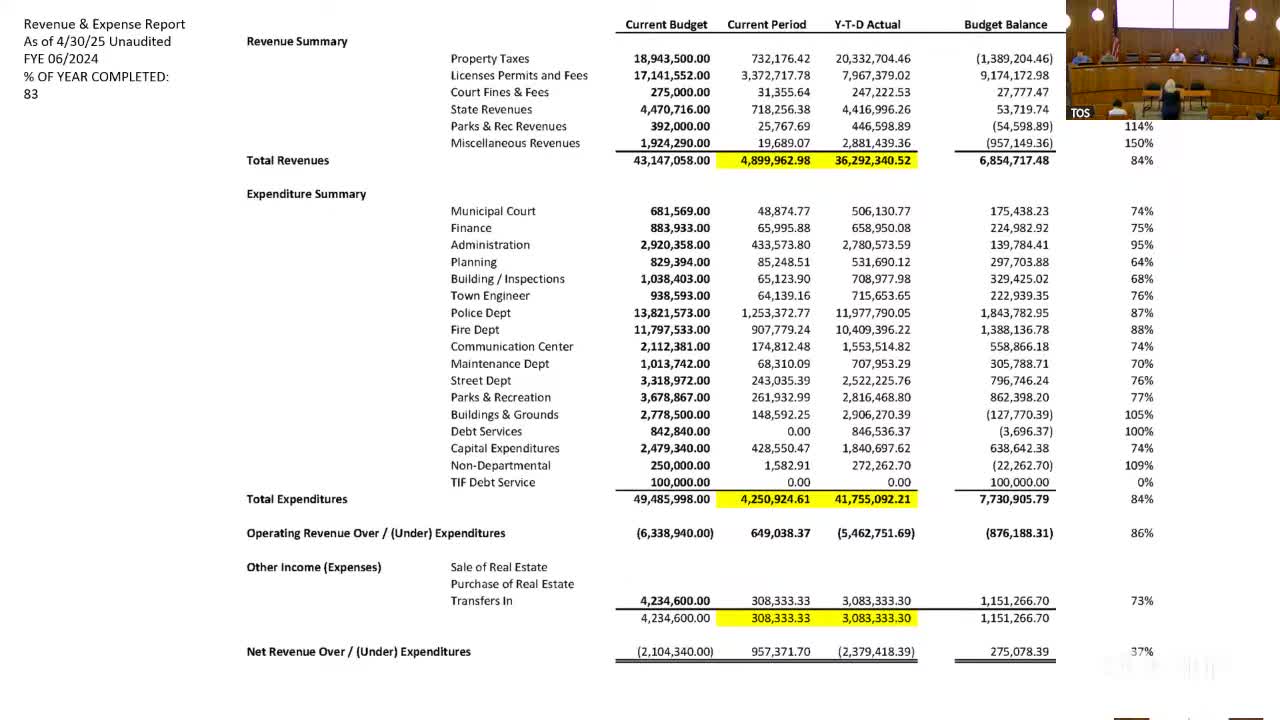 Finance director reports April revenues near $4.9M; year-to-date shortfall narrows