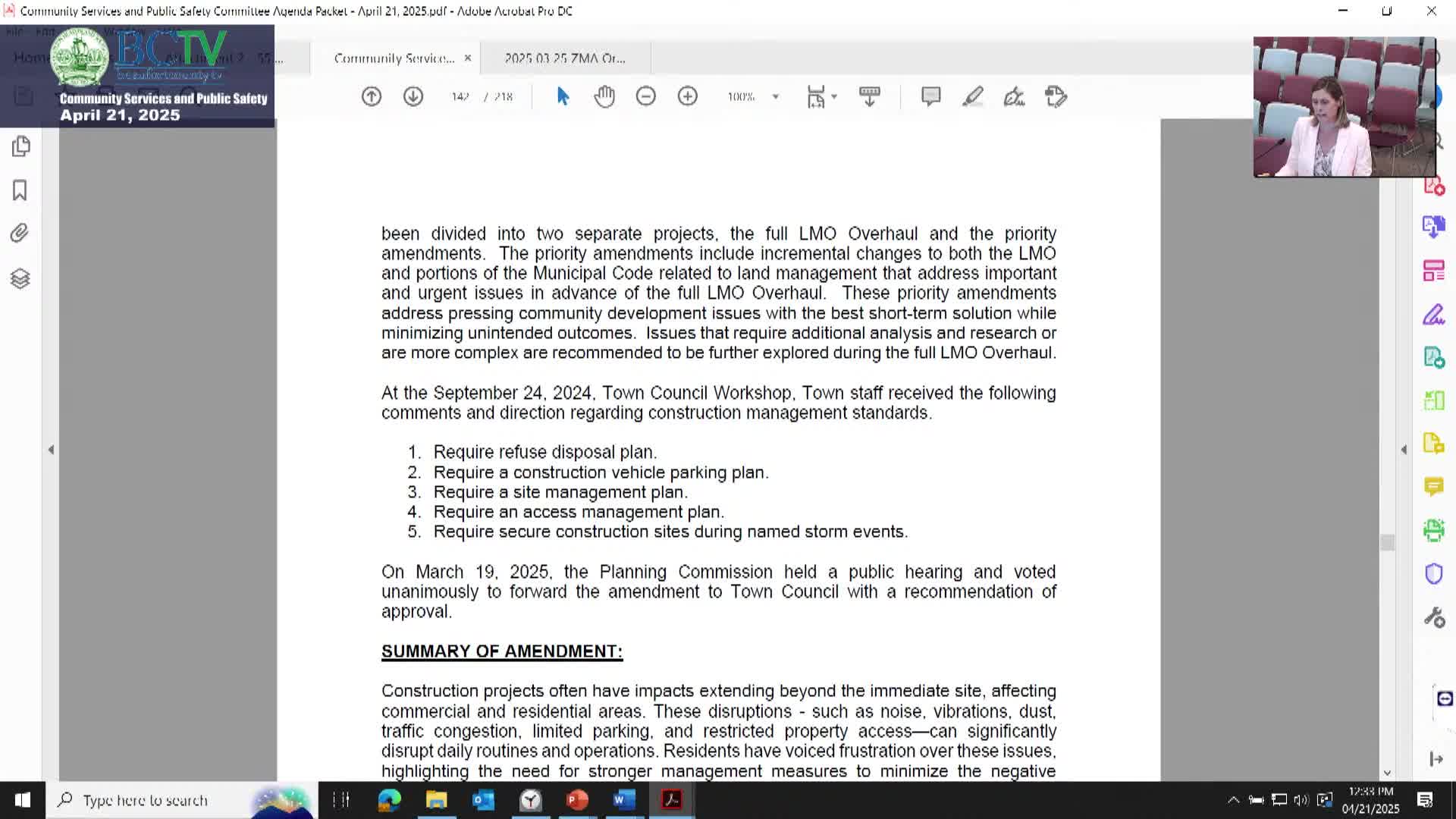 Committee recommends construction‑management standards for LMO to improve site cleanup, storm response and traffic controls