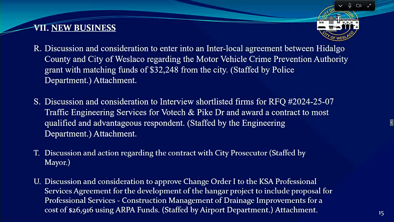 Weslaco commission approves appointments, plats, purchases and grants; tables one subdivision
