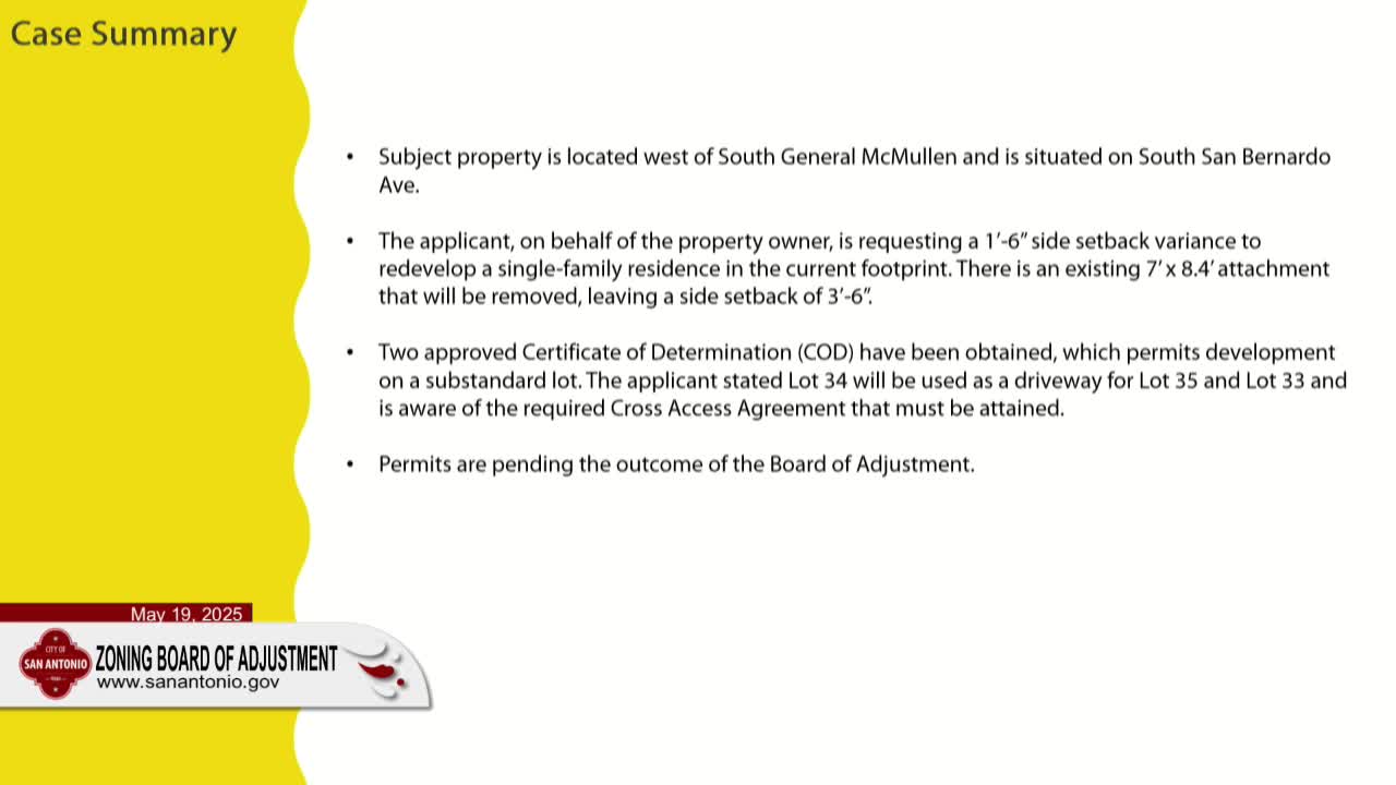 Board grants side‑setback variance for 307 South San Bernardo to allow redevelopment of substandard lot