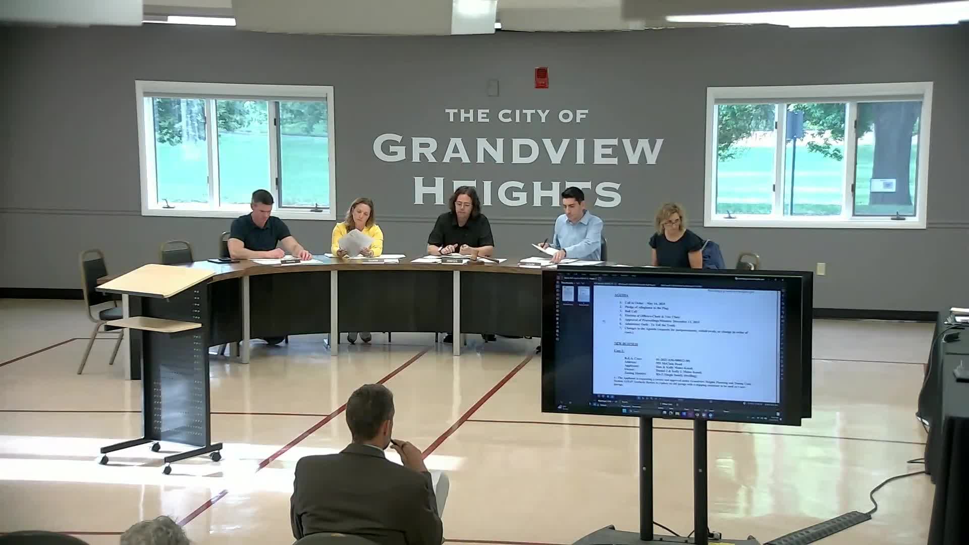 Grandview Heights board tables review of shipping‑container garage after concerns about height and massing