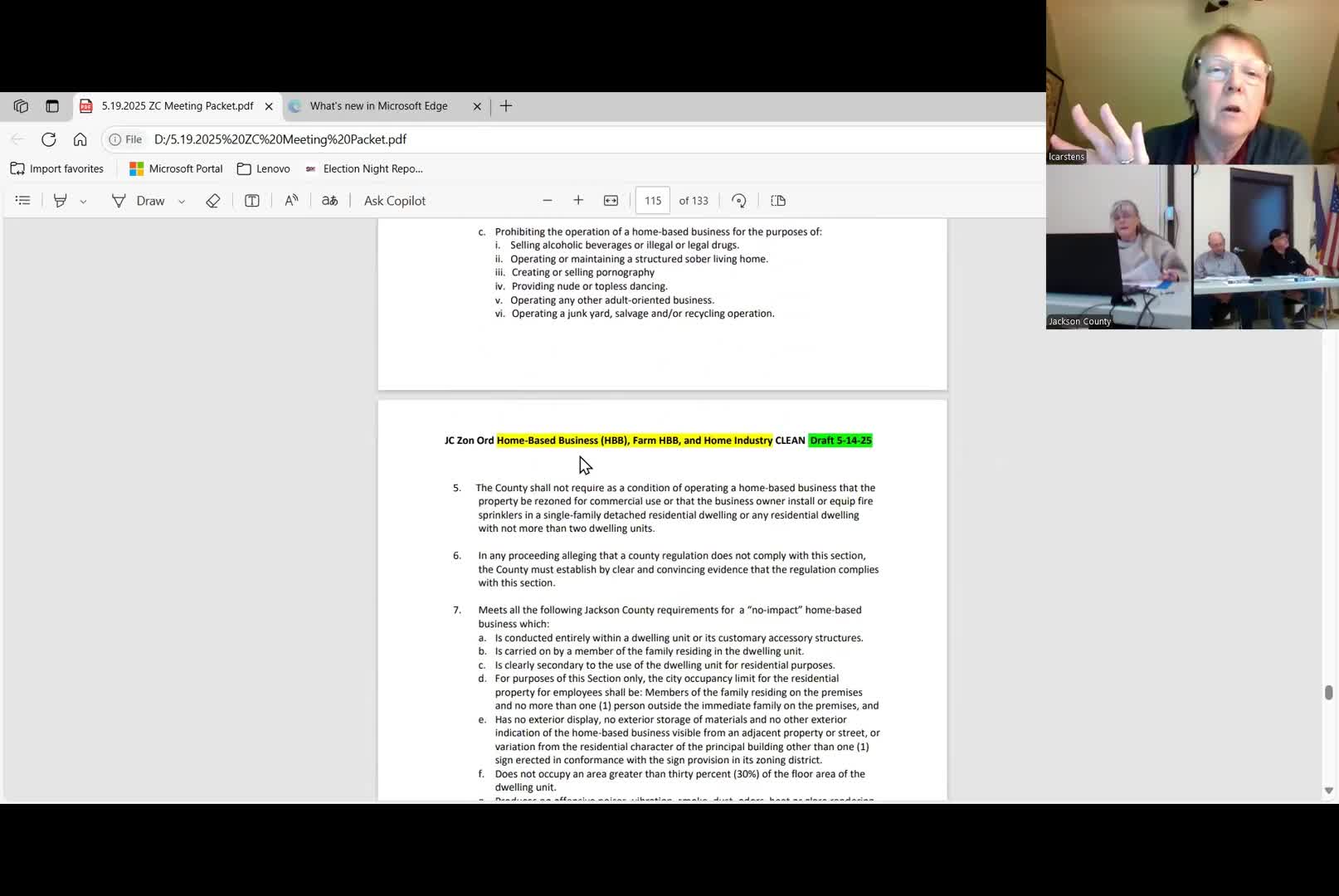 Jackson County planners present ordinance revisions including administrative waivers, home‑based business updates and draft data‑center language