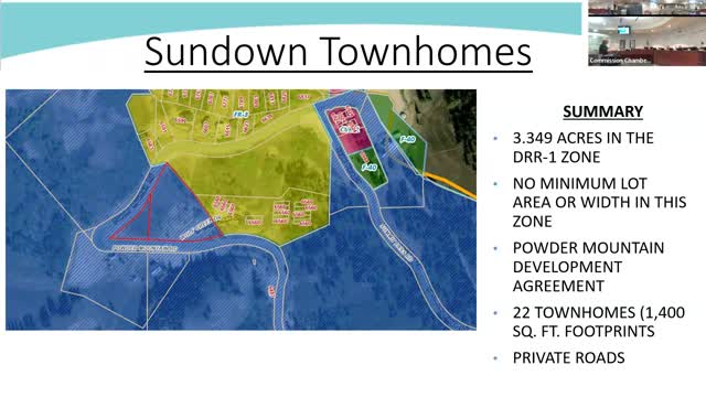 Planning commission approves Sundown Townhomes subdivision with conditions; commissioners debated private-road waiver and snow storage