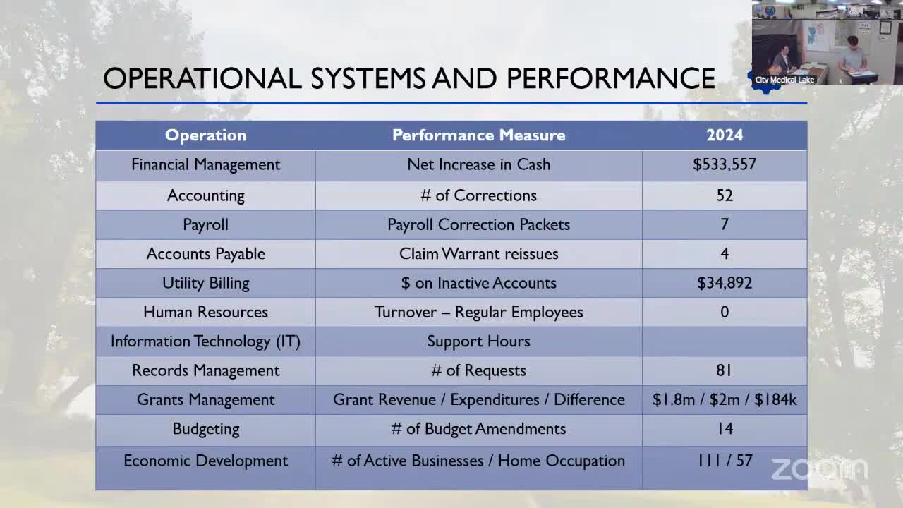 Finance director presents administrative services self-assessment; council updates fee schedule