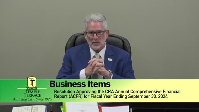 Temple Terrace CRA and City approve 2024 annual financial reports; auditors report no findings
