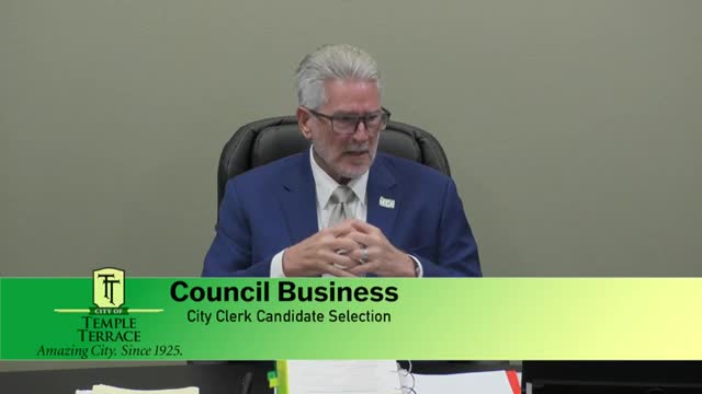 Council selects Linda Sater as preferred city clerk candidate; council authorizes negotiations and contingency steps