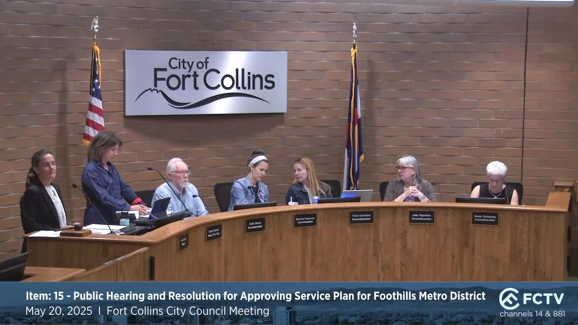 Council postpones Foothills Metro District service-plan amendment and public-benefits vote to July 1