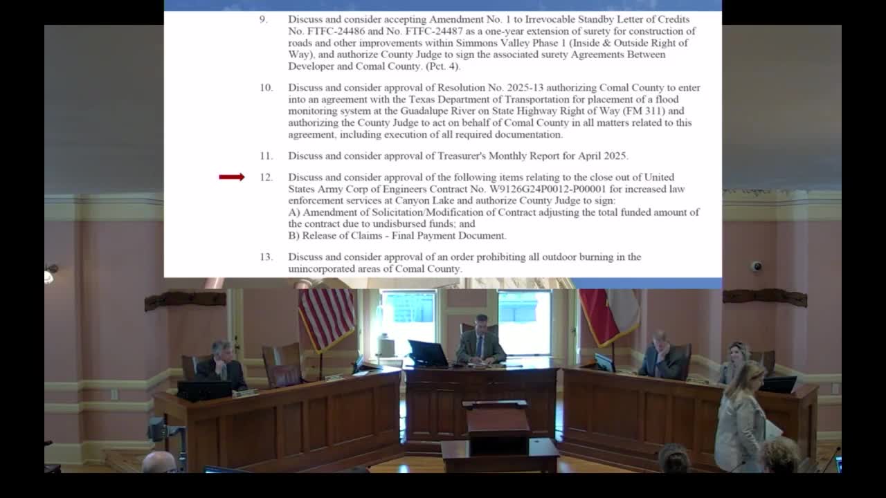 Comal County signs final amendment and release to close out USACE contract for increased law enforcement at Canyon Lake