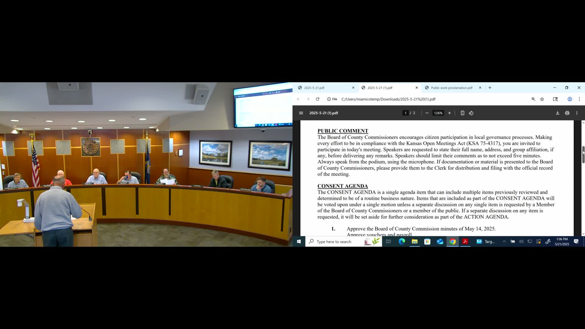 Resident asks whether spending road reserves means Miami County must raise mill levy; staff explains state reporting treatment