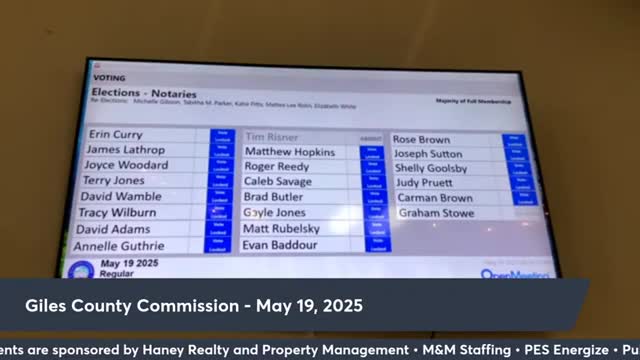 Votes at a glance: key actions from the Giles County Commission meeting